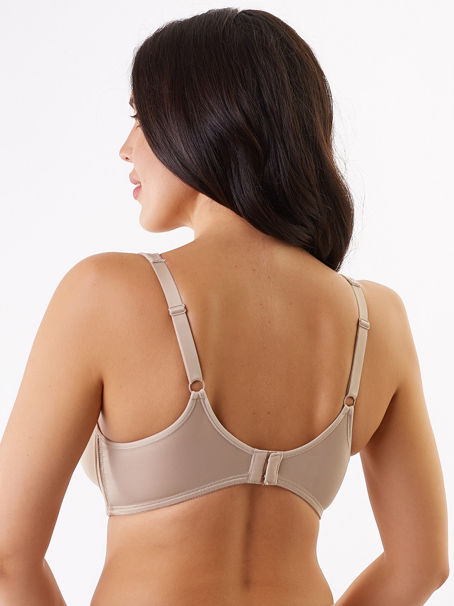 Бюстгальтер-минимайзер с гдадкими мягкими молдированными чашками без каркасов. Подходит для занятий спортом. Двойной слой преформованной микрофибры. Широкие бретели обеспечат равномерную нагрузку на плечи и спину. Идеальная поддержка. Дополнительная вертикальная косточка на боковых панелях препятствует скручиванию. Гладкий и элегантный дизайн. Прозрачные вставки на бретелях. Абсолютный комфорт.