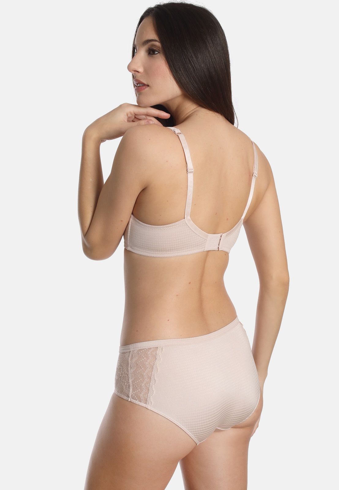 Бюстгальтер с мягкими чашками на каркасах BEAUTIFUL CLASSIC отличается элегантным дизайном и оптимальным комфортом. Расширенная центральная деталь обеспечивает идеальную посадку, а сочетание мягкой микрофибры с матовым блеском в мелкую клетку и широкой кружевной вставки в верхней части чашки придают женственный вид. Нижняя часть чашечки на хлопковой подкладке обеспечивает приятную мягкость. Боковые косточки и расширенные бретели обеспечивают дополнительную поддержку и делают этот бюстгальтер надежным повседневным спутником. Классика, гармонично сочетающая стиль и функциональность.