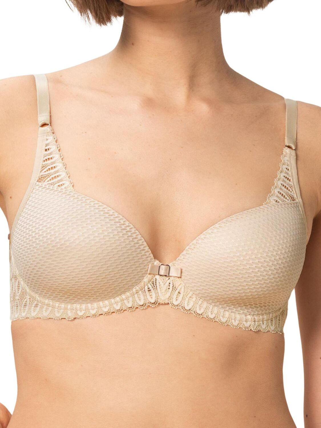 Бюстгальтер от Triumph с уплотненными чашками на каркасах с отделкой эффектным кружевом из серии Aura Spotlight.
