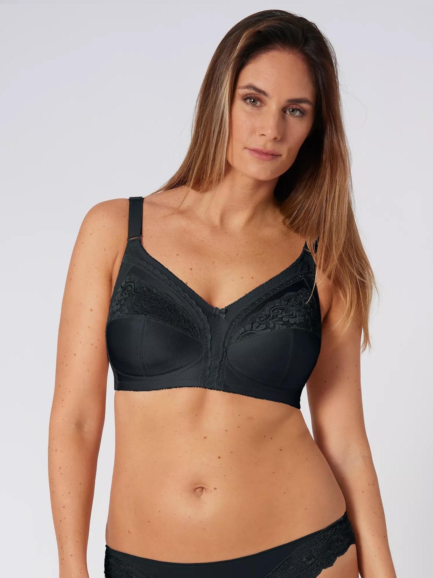 Классический бюстгальтер с мягкими чашками без каркасов Claudette от Triumph дарит женщинам великолепный внешний вид и приятные ощущения в течение всего дня. Чашки без подкладки, изготовленные из поддерживающей эластичной ткани с кружевной вставкой. Трехсекционная конструкция чашечек, идеально облегающая грудь, с полностью эластичными вставками. Вертикальные поддерживающие косточки в боковых панелях. Регулируемые по длине бретели. Мягкая застежка на крючки и петли для оптимальной фиксации. Скрытые швы для максимального комфорта при ношении.