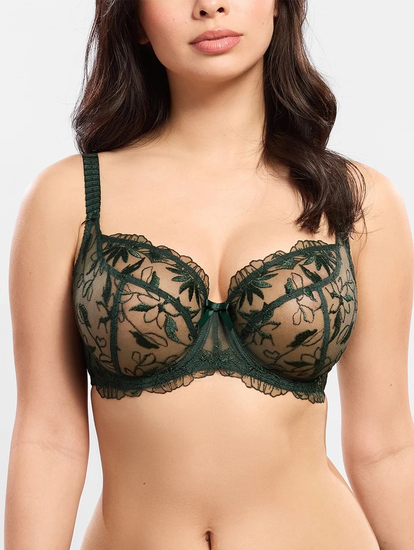 Бюстгальтер-балконет с мягкимим чашками на каркасах. Лепестки, вышитые на тюле, придают лёгкость, обольстительность и утончённость этой модели, очаровывающей своей нежностью и полупрозрачностью. Поддержка груди и комфорт обеспечиваются благодаря трехкомпонентному крою и регулируемым бретелям.