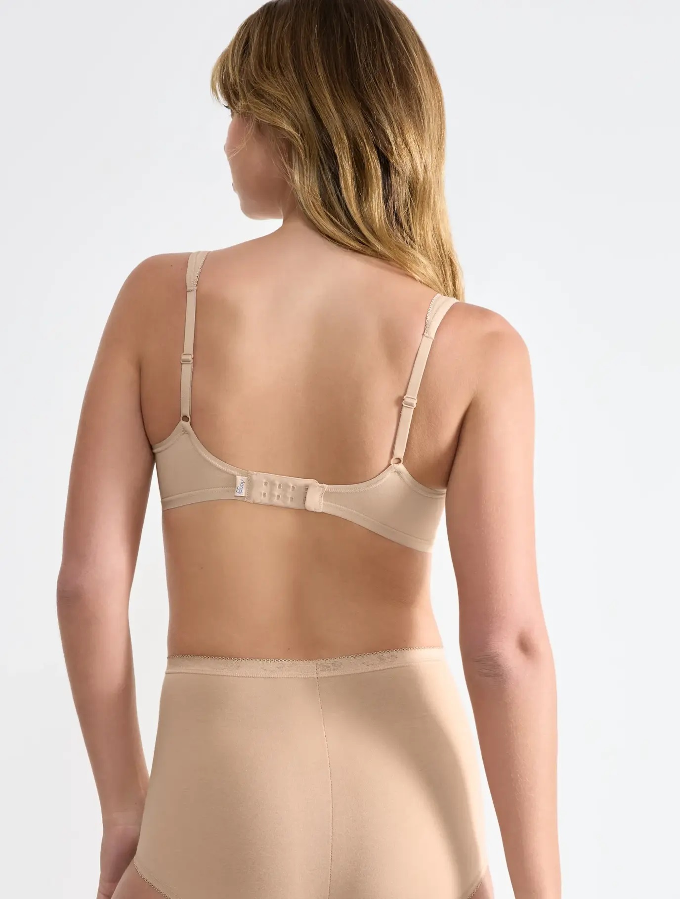 Бескаркасный бюстгальтер из органического хлопка, с мягкими бесшовными чашками, серии Basic+. Благодаря мягким швам бюстгальтер совершенно неощутим на теле и незаметен под одеждой, обеспечивая максимальный комфорт. Средняя степень поддержки. Расширенные бретели регулируются на спинке.