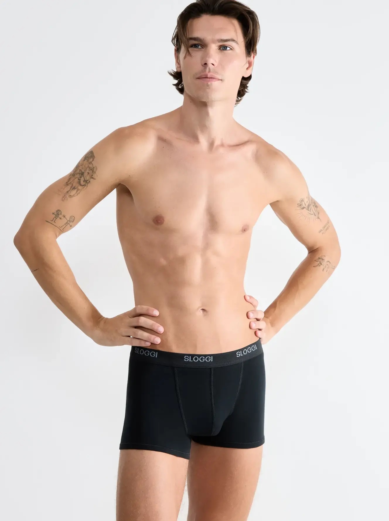 Мужские трусы-шорты серии Sloggi Basic обеспечат вам свободу движений и мягкость. Они дарят приятные ощущения и идеальную посадку. Классический крой с укороченными штанинами. Эластичный пришивной брендированный пояс. Плоские швы и мягкие края штанин с подворотом обеспечивают дополнительный комфорт. Высококачественный и прочный трикотаж гарантирует идеальную посадку даже после многочисленных стирок. Хлопок-стрейч с добавлением лайкры FREEFIT X-MOVE - для повышенной эластичности.